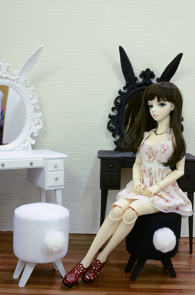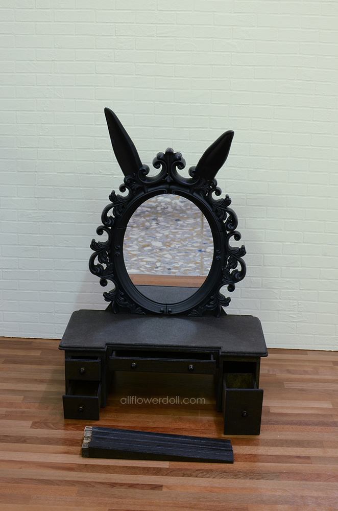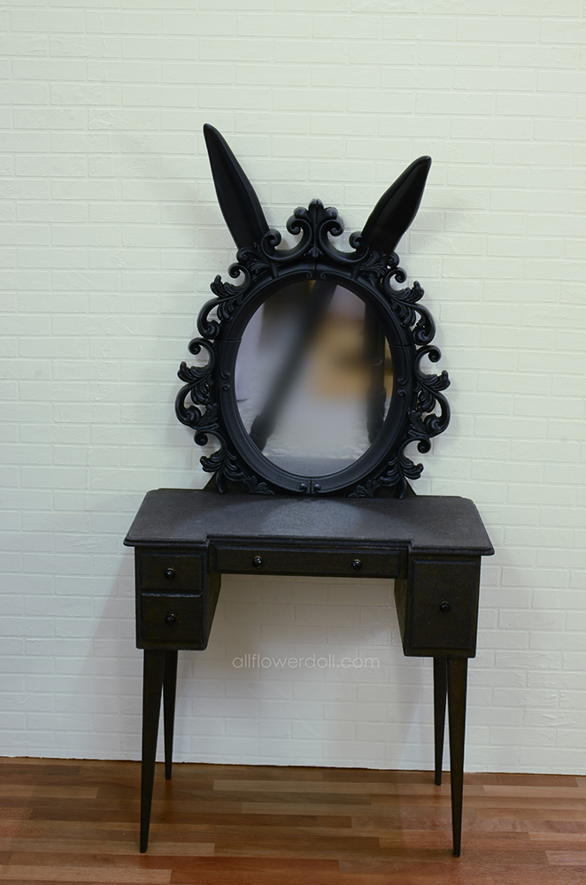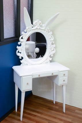 魅惑黑兔鏡台的大格抽屜跟傲嬌白兔的相反唷!魅惑黑兔的大格抽屜是在右邊唷!