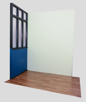 如果你剛好有另一塊不同風格的背景版可以使用這種短的空間隔牆隔出區塊,如搭設棚景般,可以使拍攝畫面延伸,但又不失整體性,這真實比例的隔板在外國居家頗常見的。